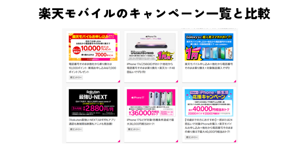 楽天モバイルのキャンペーン一覧と比較