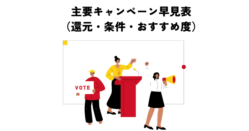 • 主要キャンペーン早見表(還元・条件・おすすめ度