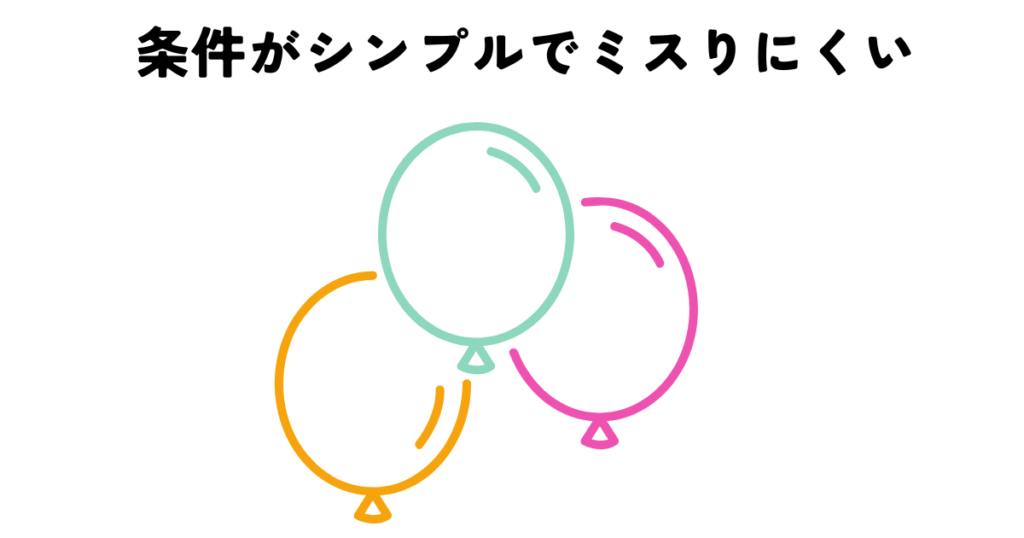 • 条件がシンプルでミスりにくい