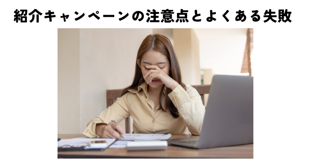 紹介キャンペーンの注意点とよくある失敗は以下の3つです。