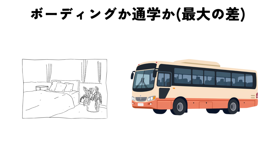 一番大きい差となるのが、ボーディングか通学かです。